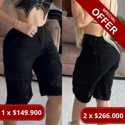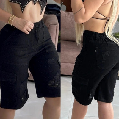La pedrería frontal y el corte de la biker le dan protagonismo a tus piernas como una elección tuya, no como una obligación para encajar en un estándar.