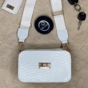 Su diseño elegante en color blanco complementa tanto looks casuales como formales.
