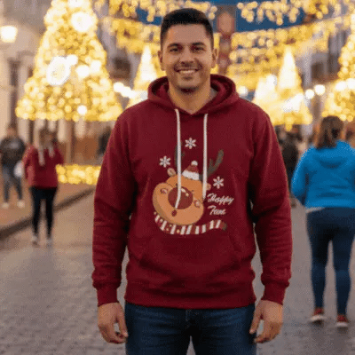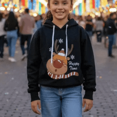 Se logra visualmente con buzos iguales para todos y el estampado del reno que suma al espíritu navideño.