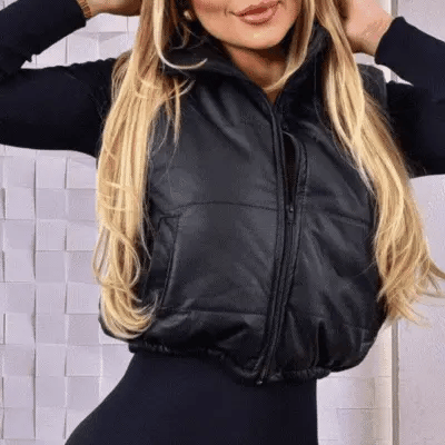 Diseño: chaleco corto, tipo puffer ligero, con resortado o ajuste en la parte baja para adaptar a la figura.