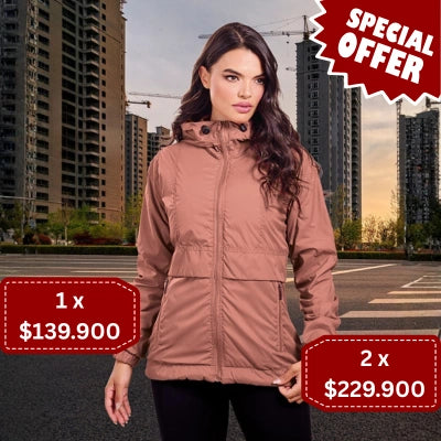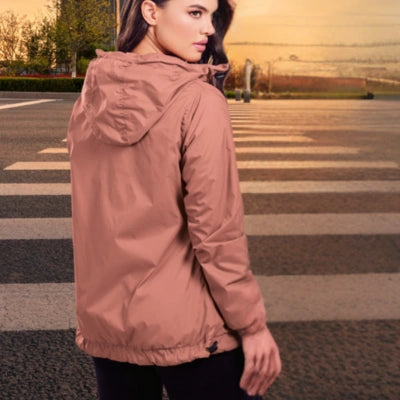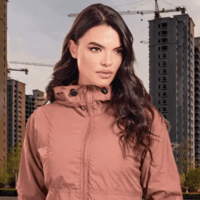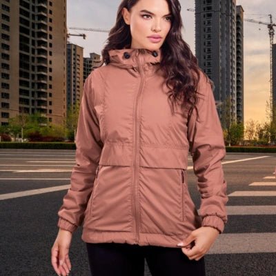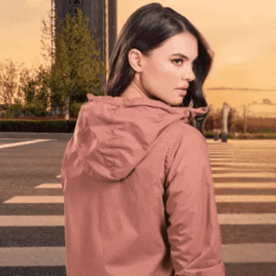 El nylon impermeable bloquea lluvia y viento, logrando protección real sin hacerte ver pesada.