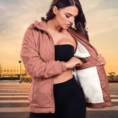Esta referencia tiene interior en ovejero tipo peluche, que brinda una sensación de abrigo suave y cálido, y exterior en nylon impermeable, ideal para viento y lluvia ligera.