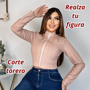 Detalles: Cremalleras bajas en los hombros + cierres frontales.