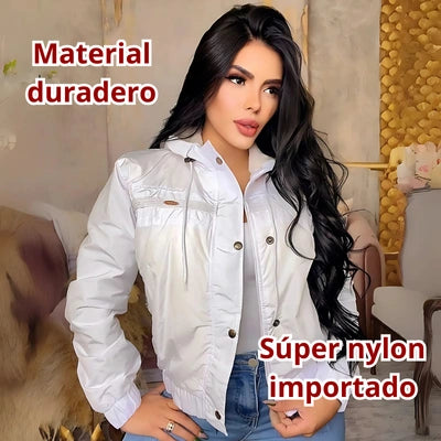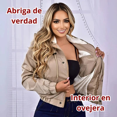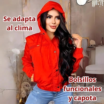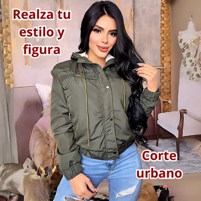 Diseño: Chaqueta corta tipo bomber con capota.