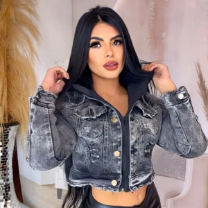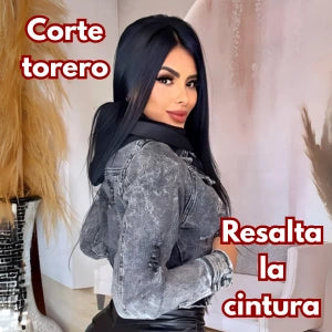Diseño: Corte torera con detalles desgastados y capucha interna tipo buso.