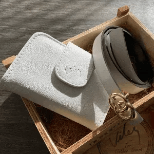 La correa doble faz y la billetera de diseño sofisticado añaden un toque de clase a cualquier atuendo.