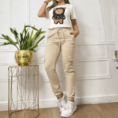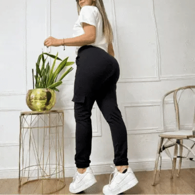 El diseño tipo jogger cargo con bota elástica y pretina con cordón ajustable ayuda a realzar tu figura sin incomodarte, marcando lo justo en cadera y piernas