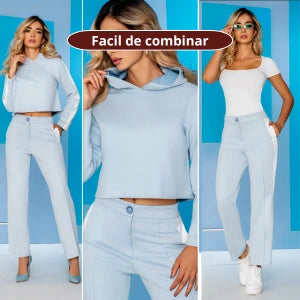 Tanto el buzo como el pantalón funcionan perfecto por separado, combinando con camisetas, tops o tenis de cualquier color neutro.