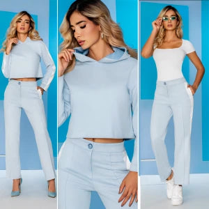 Pantalón R-015: Pretina de 1 botón, bota recta, tono azul cielo.