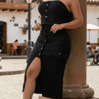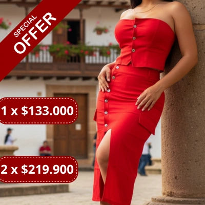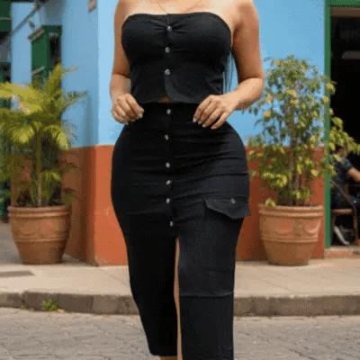 Corte de falda y top pensado para líneas verticales, cero bultos.