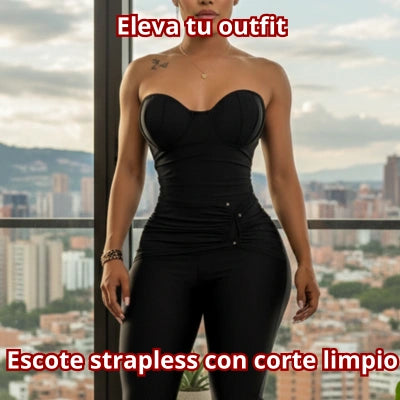 El corte strapless está diseñado para quedarse en su lugar. La licra de alta calidad y el diseño del escote trabajan juntos para darte esa seguridad sin necesidad de ajustes constantes.