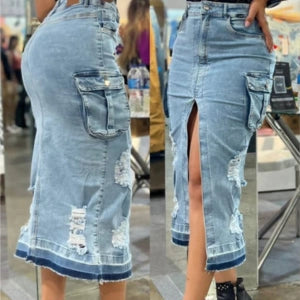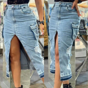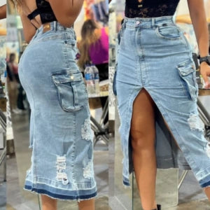 La abertura delantera y el diseño moderno hacen que esta falda sea perfecta tanto para un día casual como para una salida especial.