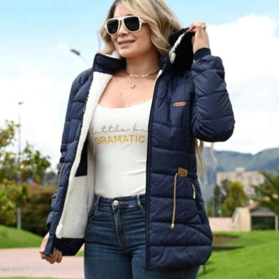 El nylon acolchado y el forro peluche te protegen del frío sin sensación pesada.