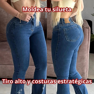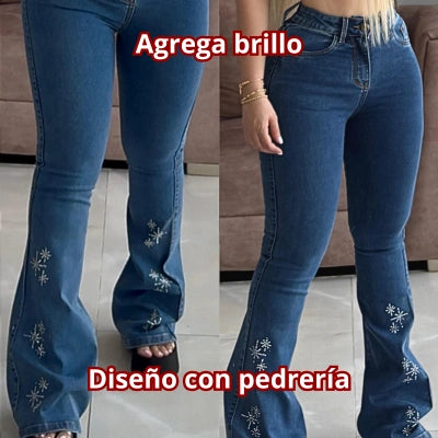 Tipo: Jean bota campana con pedrería decorativa Tipo: Jean bota campana con pedrería decorativa