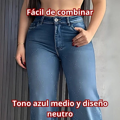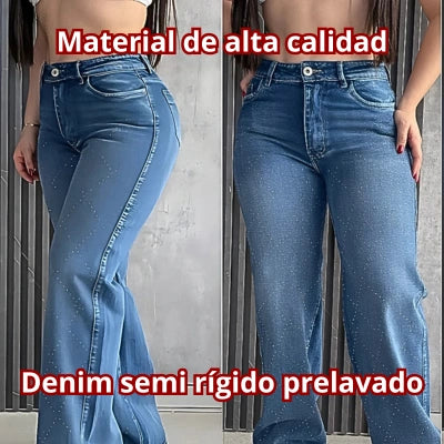 Material: Denim semi rígido prelavado con acabado de pedrería suave brillante. Material: Denim semi rígido prelavado con acabado de pedrería suave brillante.