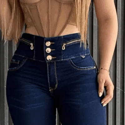 La pretina alta con 3 botones ajusta y recoge, moldeando la cintura.