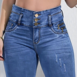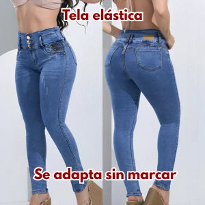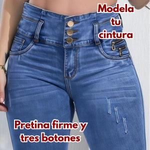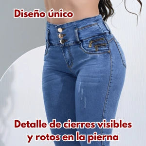 Diseño: Pretina alta con 3 botones, costuras que estilizan, efecto levanta cola, bota entubada, cierres a la vista