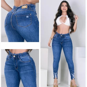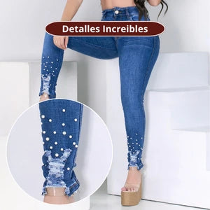 Diseño: Pretina desflecada, perlas en bota, destroyer y desgastes Diseño: Pretina desflecada, perlas en bota, destroyer y desgastes