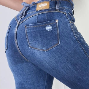 El fit y la construcción del jean levantan y abrazan tus curvas sin necesidad de una faja adicional.