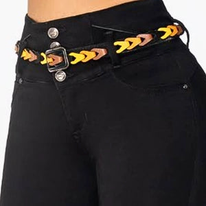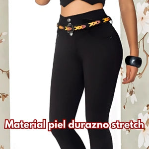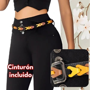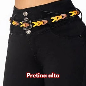La pretina alta con control suaviza y marca la zona del abdomen.