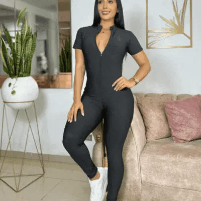 Corte: enterizo minimal con cuello alto deportivo.