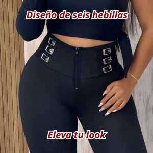Diseño: Tiro alto, cremallera frontal y 6 hebillas metálicas decorativas Diseño: Tiro alto, cremallera frontal y 6 hebillas metálicas decorativas