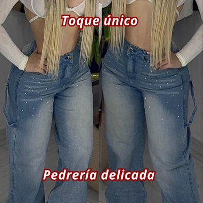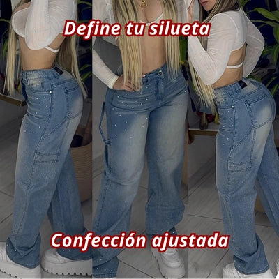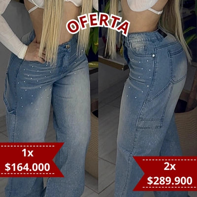 Detalles: Pedrería en cintura y parte superior y Bolsillos: Laterales y traseros funcionales.
