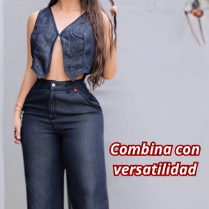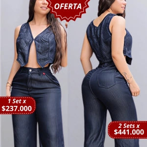 Corte: Chaleco con espalda descubierta y pantalón wide leg. Corte: Chaleco con espalda descubierta y pantalón wide leg.