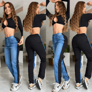 ✅ Diseño de dos telas: dril negro en la parte posterior y jean azul en la parte delantera.
