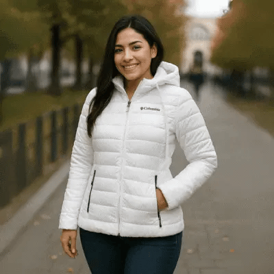 El relleno siliconado retiene calor sin hacerse pesado; ideal para mañanas frías.