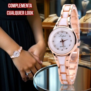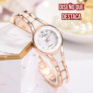 El reloj está hecho con acero inoxidable de alta calidad y detalles metálicos resistentes que garantizan una larga vida útil con el cuidado adecuado.