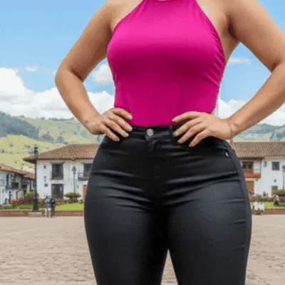 Con tiro alto y pretina que contiene el abdomen de forma pareja y discreta.