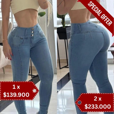 El denim stretch moldea suavemente sin generar presión; respeta tu forma y la acompaña.