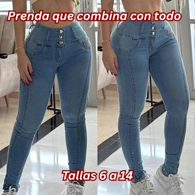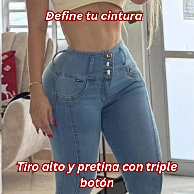 El tiro alto y la pretina ancha con triple botón recogen la zona del abdomen sin sensación de “ahogo”.