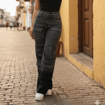 El diseño con efecto levantacola natural y construcción en jean rígido ayuda a que el glúteo se vea más definido, sin necesidad de costuras exageradas ni trucos incómodos.