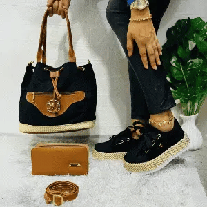 El conjunto de bolso, billetera y calzado a juego te permite tener un look coordinado y elegante en cualquier ocasión.