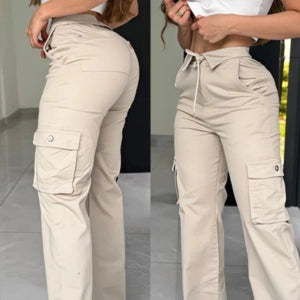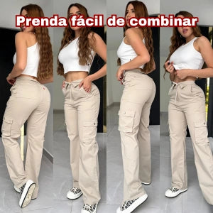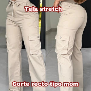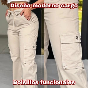 Extras: Bolsillos laterales tipo cargo con tapa y botón, sistema levanta glúteo, cordón frontal decorativo