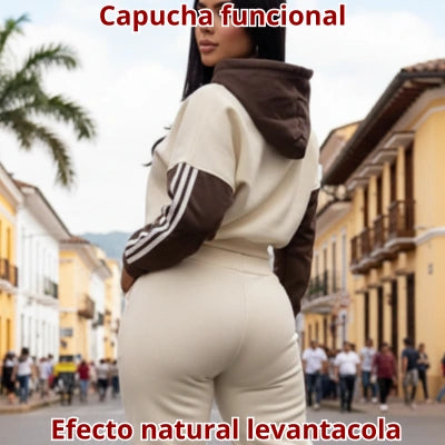Conjunto 2 piezas: buzo corto con capucha + jogger.