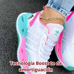 Suela: Tecnología Boost visible, con detalles geométricos Suela: Tecnología Boost visible, con detalles geométricos