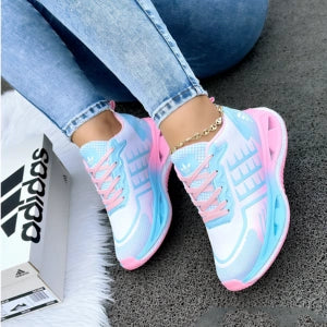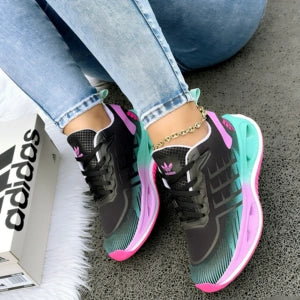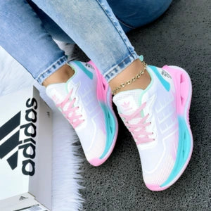Los colores rosa brillante, azul claro y verde clásico hacen que estos tenis sean únicos y modernos